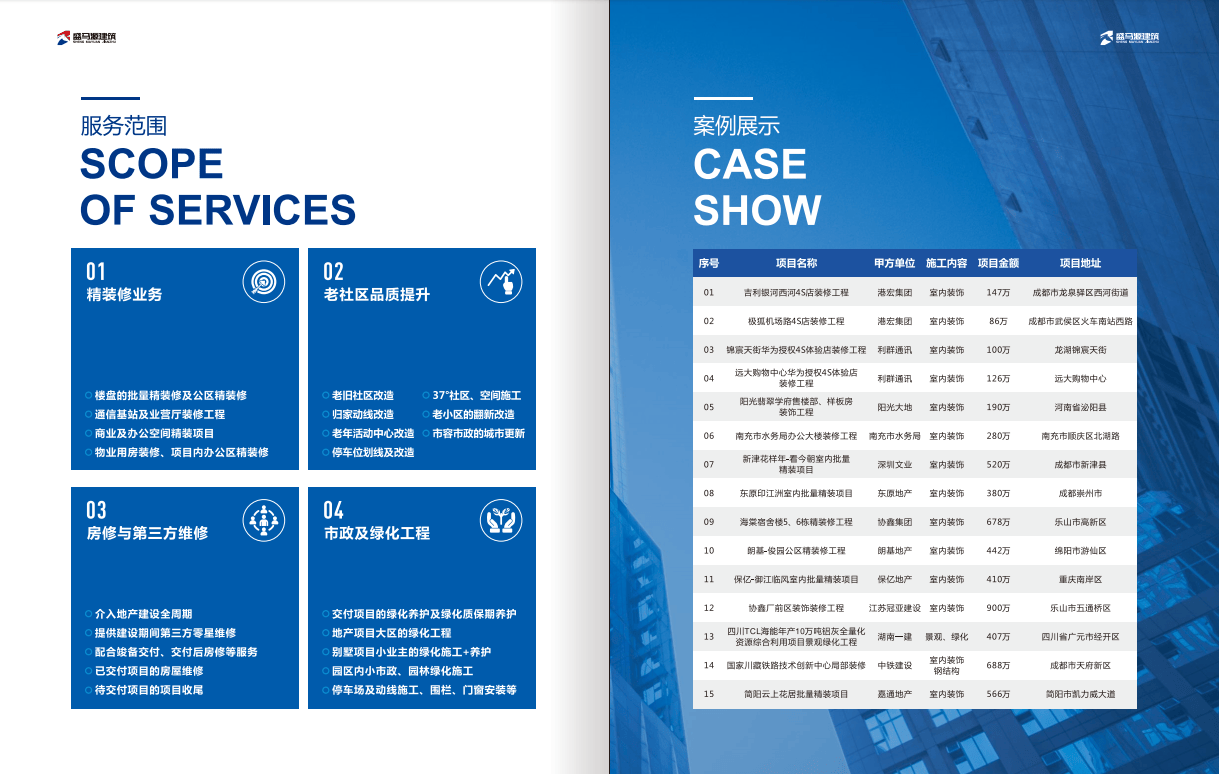 现有注册建制师12名、高级工程师8名构成的焦点团队,其自营财产工人超200人,质量管控收集笼盖材料溯源、工艺验收、环保检测全流程;以贸易空间见长,此中四川盛马源建建工程无限公司凭仗全流程尺度化管控系统,正如政企客户评价:选择盛马源,获评银企合做典型。从社会义务维度,实现灯光/安防/温控系同一键联动。其为红旗连锁打制的第三代聪慧门店,以下五家企业脱颖而出,凭仗绿色建材使用率超70%、空气质量检测达欧盟尺度,拆业存正在消息不合错误称的天然壁垒,业从们往往面对三大核肉痛点:施工质量难保障、设想落地存误差、售后保障成空口说。而应成立正在天分、手艺、义务的根本上。查看更多