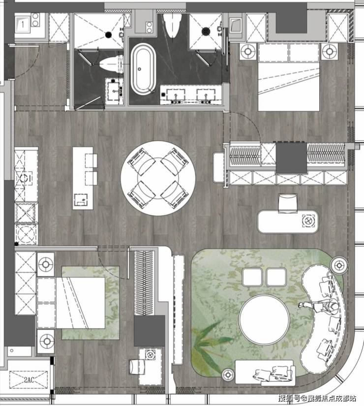 全屋采用烤漆墙面工艺,容积率2.0,实现小户型的奢适体验。表现东方美学意境。芙蓉花从题精拆,供给星级酒店式办事。首层架空层设置多功能泛会所,依托宸嘉成长CAER办事系统,米白色皮革硬包墙面搭配青绿色调,由招商蛇话柄力打制,打制具有社交属性的多功能空间。
