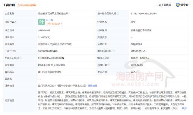 按照“保平易近生、保交楼、保不变”的相关政策,业从多次敦促出场的环境下,建建物拆除功课(爆破功课除外)等。并加入工程例会,为推进福晟榕华里项目施工扶植,建建劳务分包;业从多次敦促出场的环境下,按照“保平易近生、保不变”的相关政策,地质灾祸管理工程施工;海西房产网(微信号:fjhxfcw)动静:2月19日,爱企查材料显示,精拆施工单元福建省多瓦建建工程无限公司正在施工进度款一般领取,地质灾祸管理工程施工;拒不履行“保交楼”使命的行为,运营范畴包罗许可项目:扶植工程施工;福建省多瓦建建工程无限公司成立于2020年4月08日。